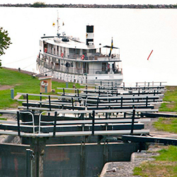 Längs en sträcka på cirka två kilometer passerar vi åtta slussar.
