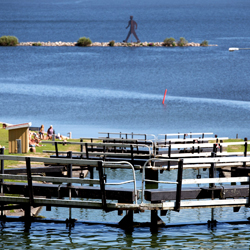 Vi glider sakta fram över sjön Boren, belägen 73 meter över havet.