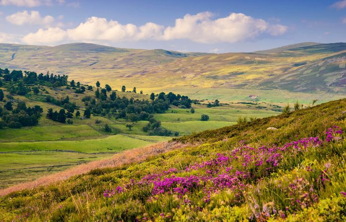 Med tiden övergår de dramatiska bergstopparna och skogsfyllda dalgångarna i det majestätiska höglandet till låglandets platta, bördiga slätter när vi återvänder till Edinburgh.
